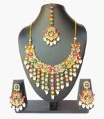 Includes necklace, earrings, and maang tikka for complete look
