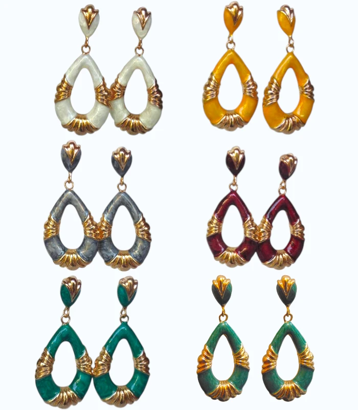 Gold Marble Textured Drop Statement Earrings for Women