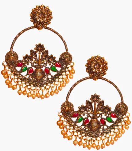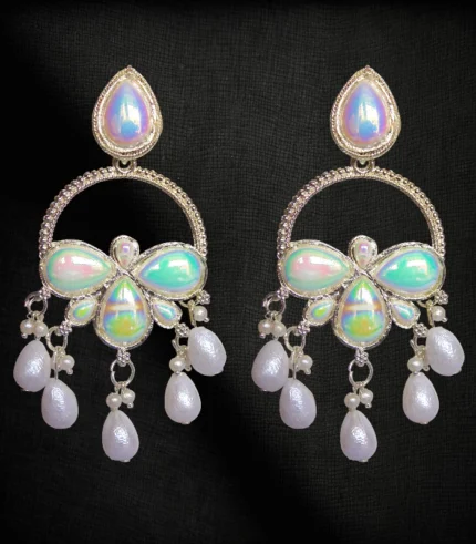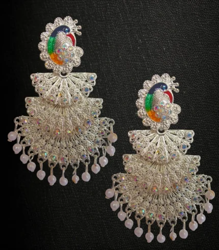 Tassel studded silver plated stone dangle earrings