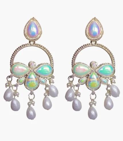 Green Kundan Hook pearl earrings