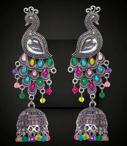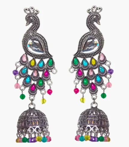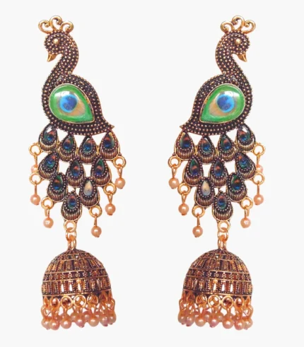 Blue Gold Plated Peacock Jhumka Earrings