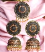 Dramatic Dangle: Long and elegant, these earrings with mang tikka make a statement, adding sophistication to any outfit.