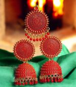 Home Earrings MAANG TIKKA Gold Plated red Kashmiri earring with Mang tikka