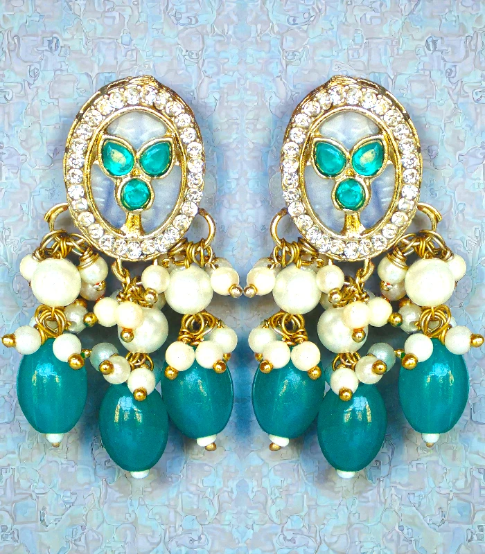Handcrafted kundan stones with emerald-green beads create a refined and timeless traditional jewellery statement
