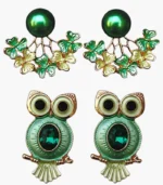 Green Pearl & Owl Earring Combo Green Pearl & Owl Earring Combo