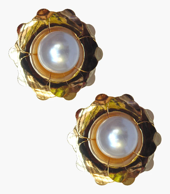 Golden Pearl Blossom Earrings