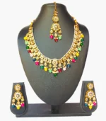 Includes necklace, earrings, and maang tikka for complete look