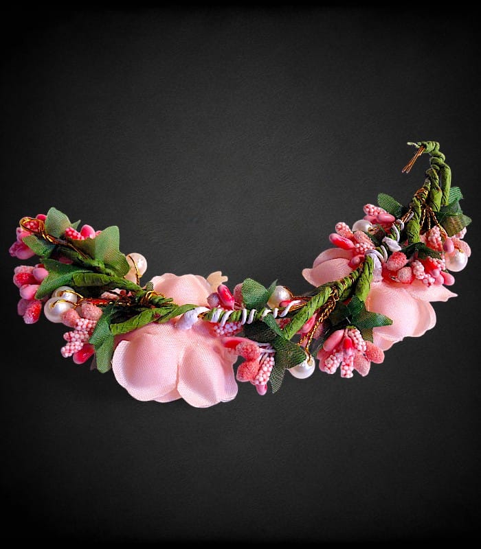 Handcrafted floral hairband made with high-quality artificial flowers, pearls, and buds