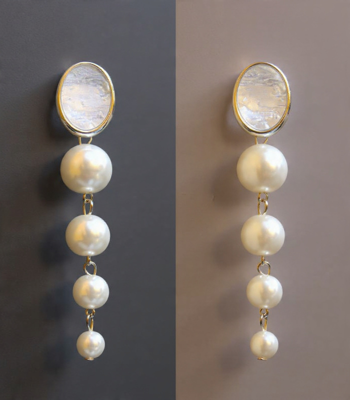 Elegant oval mother-of-pearl top with cascading pearl drops