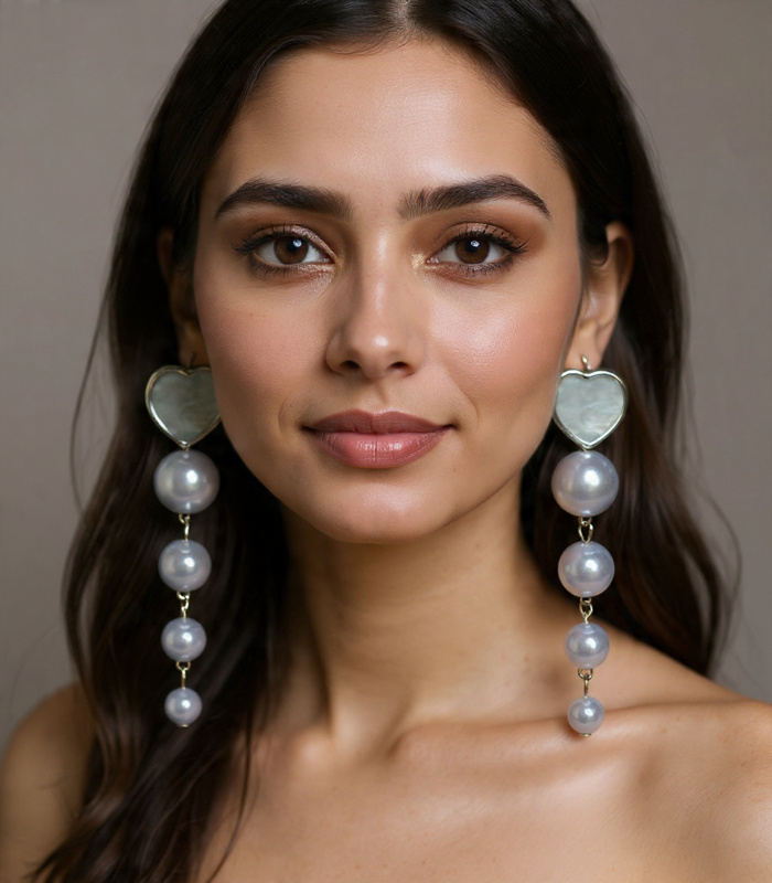 - Elegant design with a mother-of-pearl heart and graduated pearl drops.