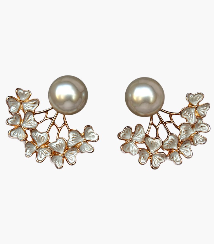 Combo set featuring floral pearl ear jackets and owl studs