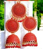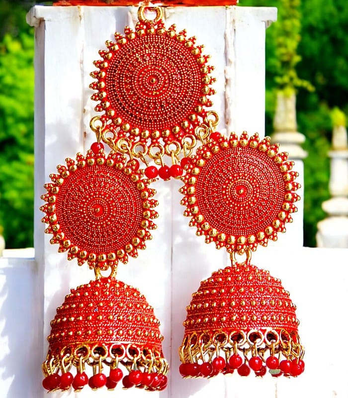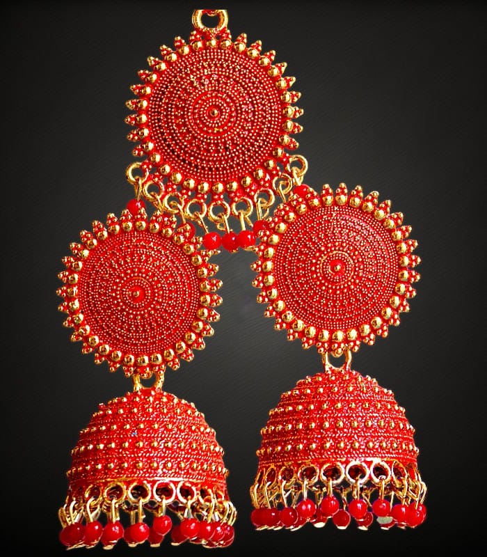 Bollywood Glamour: These jhumkas add a star-quality touch to your wedding attire, inspired by the glitz and glamour of Bollywood.