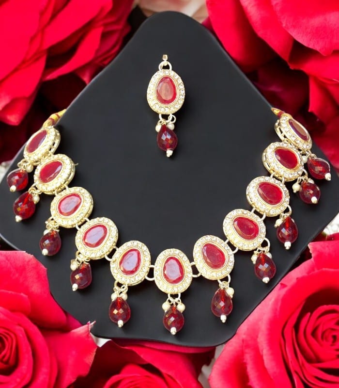 • Ruby-Colored Oval Stones – Adds richness and vibrancy.