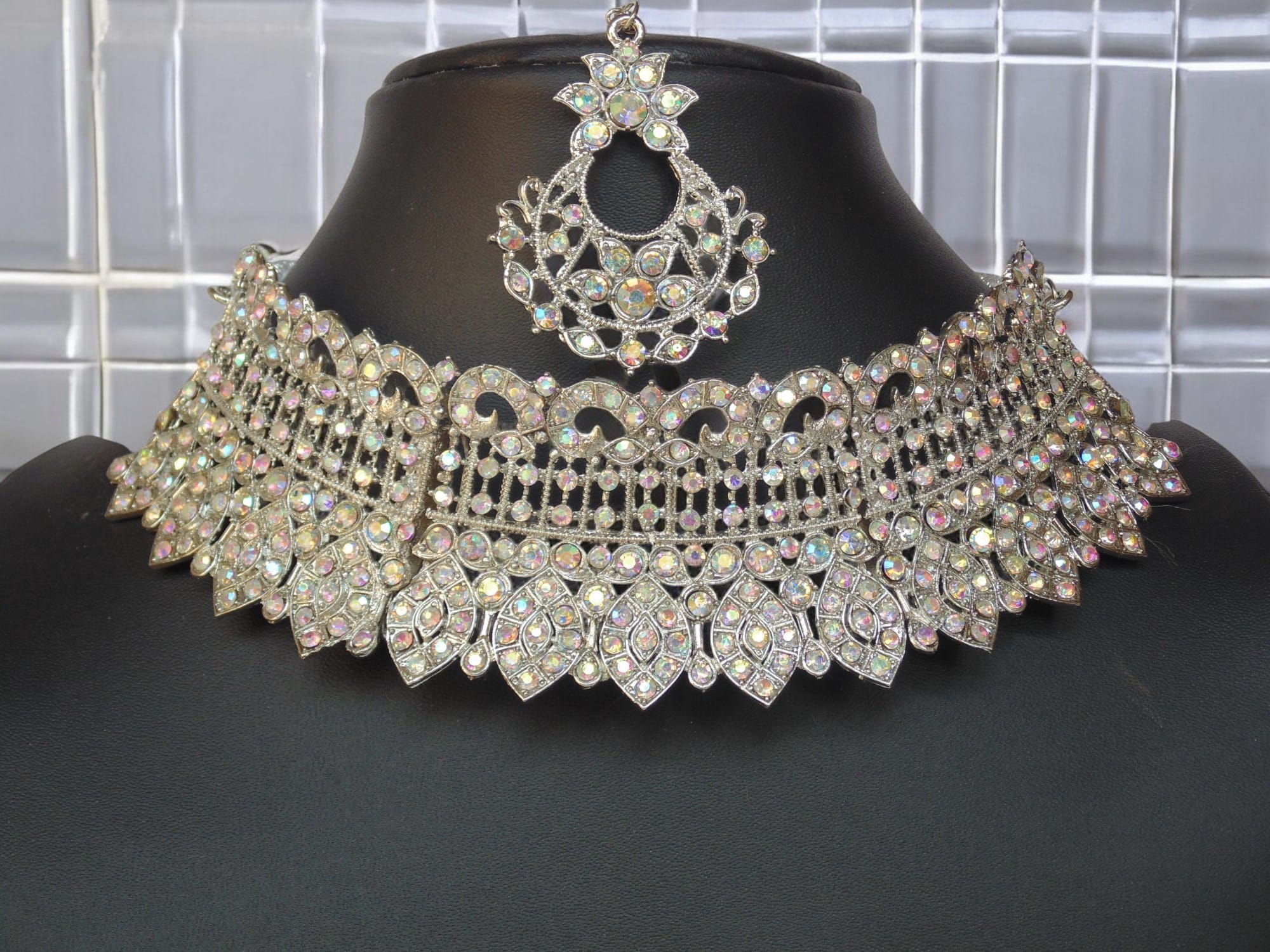 - Complete Bridal Set: Includes a choker necklace, earrings, and maang tikka.