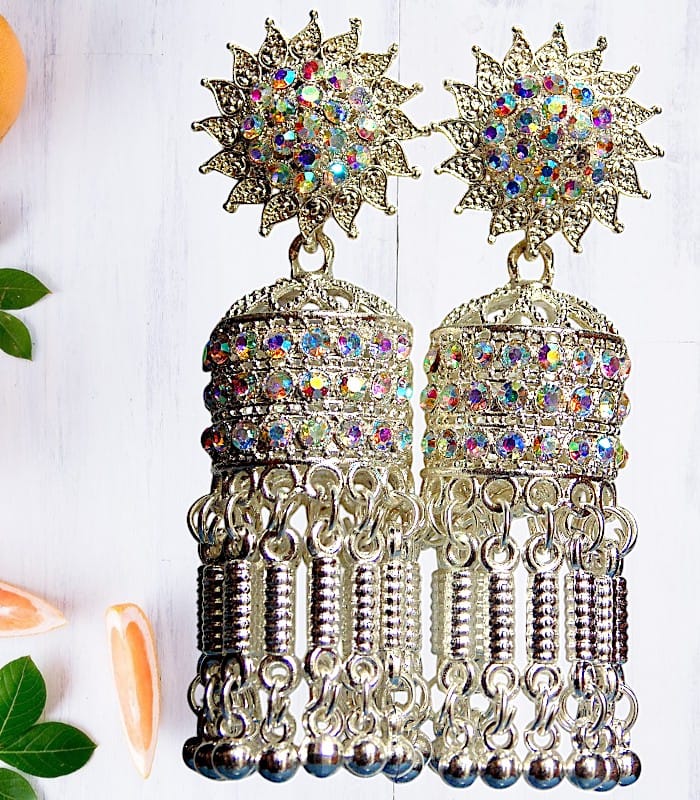 Luxurious Design: These stylish Chandbali Jhumka earrings feature craftsmanship for a luxurious, glamorous look.