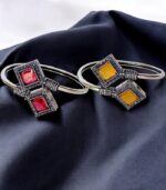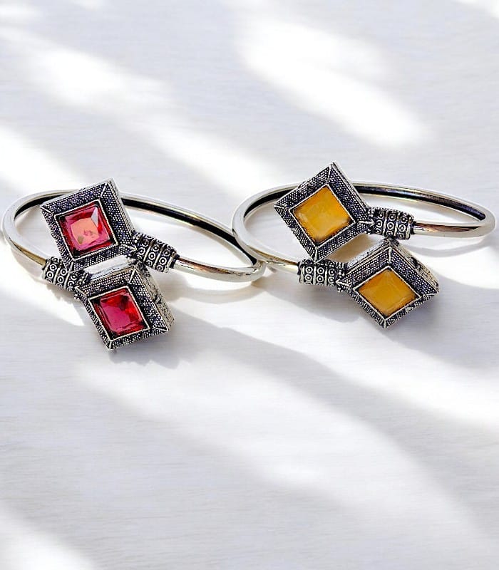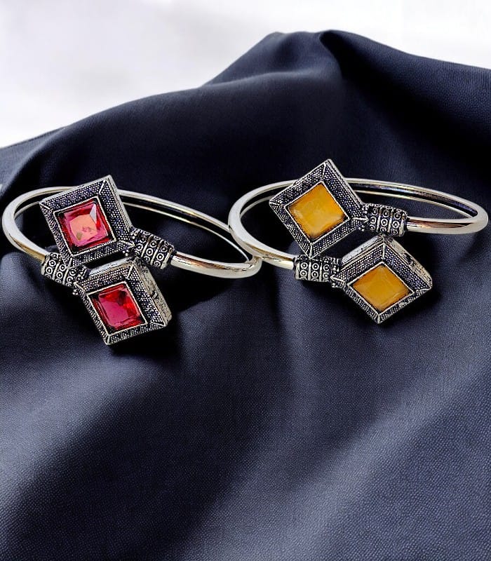 - Exquisite silver-plated cuff bracelet with gemstone accents