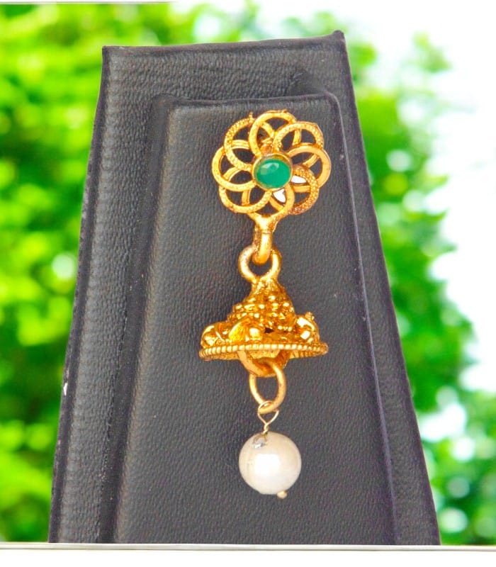 - Matching Jhumka Earrings: Features intricate detailing and pearl drops.