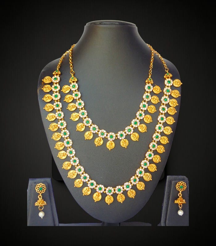 - Temple-Inspired Design: Showcasing traditional Lakshmi coin motifs.